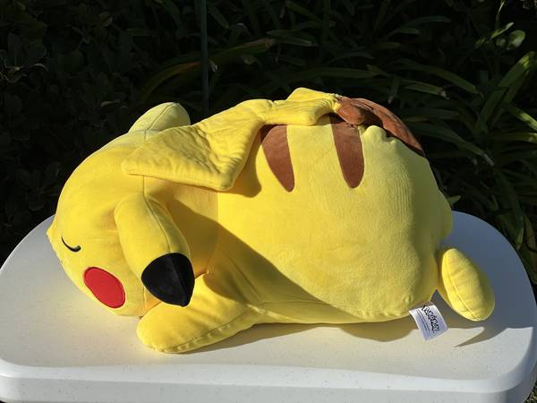 Excellent condition, large plush cuddly stuffed pillow animals. Includes a Squishmallow "Unai" Cosmic Galaxy Purple Mushroom, Pokemon Sleeping Pikachu and pink Jigglypuff. Selling all three for $25...