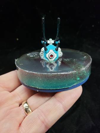 Made from a Robotech RPG tactics Heavy battle pod and partially submerged in resin with scenic surroundings (rocks).