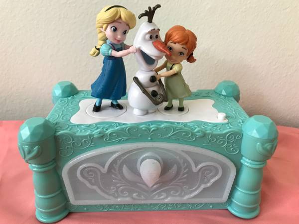 * Young Anna & Elsa come to life and build the loveable snowman Olaf with the Frozen Jewelry Box