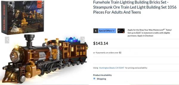 Steampunk Ore Train with LED light kit building block set by Funwhole. $135