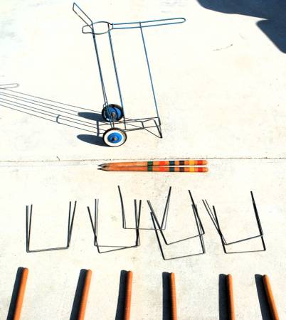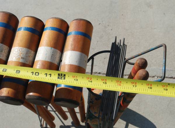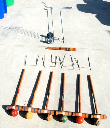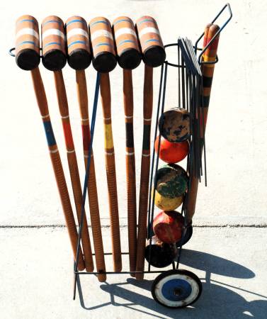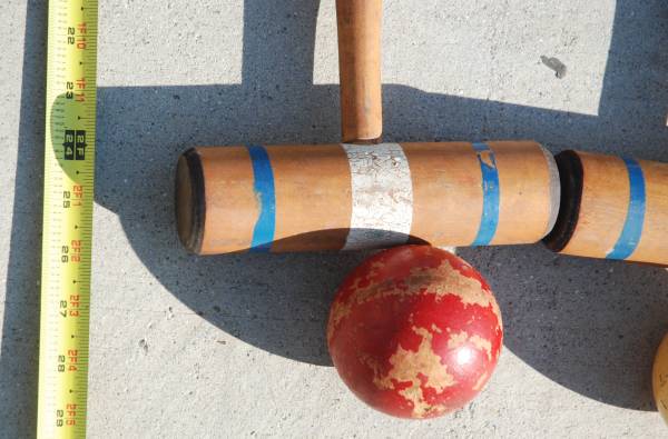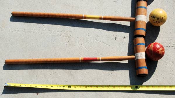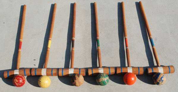 1940's-1960's Croquet Set Wooden Ball, Mallets, 9 Wickets (the wire hoops) (6) Players.