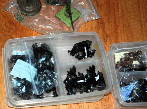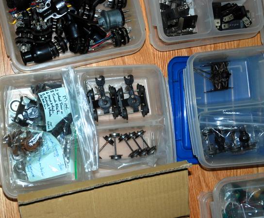 BIG LOT OF O GAUGE Train Parts Assortment of Model Parts One large plastic bin full. See pictures