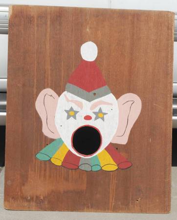Folk Art Carnival Cornhole "Sand bag Toss" Amusement Game Only One. Great Wall Hanger It has been painted on wood paneling. Has a little flex to it..