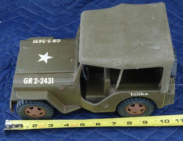 Vintage 1960s Tonka Toys Green Willys GR2-2431 Army Military Jeep Complete