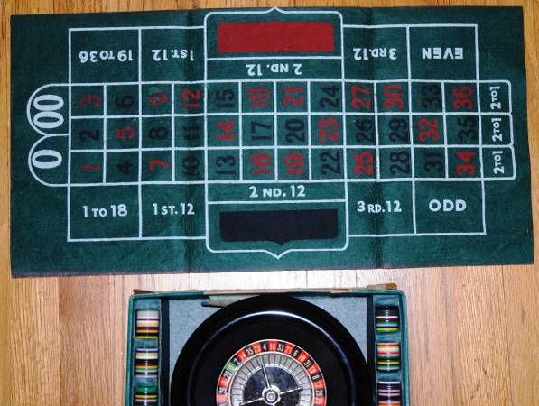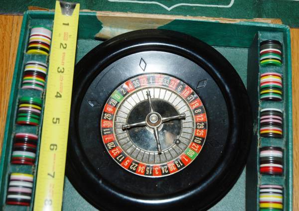 Vintage Small Roulette Wheel Game Travel Set Hard Plastic & Metal Wheel
