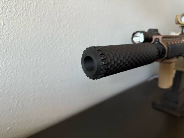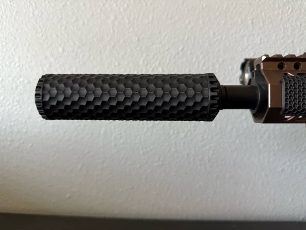 AR-15/ M4 suppressor designed for 14mm CCW thread and 18mm diameter barrel.