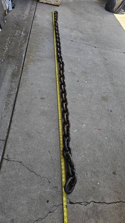 Steel chain, one link measures 2 1/2" x 3 1/2" total length is 118" long very heavy.
