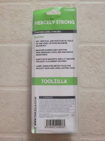 - Impressively light: The TOOLZILLA 9 Torpedo Level has a lightweight aluminum body including 3 tubular vials machining level designed to be used on multiple angles (1 level, 1 plumb, and a 45° vial) - - Surface protection: This tool box level has a non-conductive, non-corrosive frame with a quality finish that will not scratch fine wood or painted surfaces and can be used as plumber level
