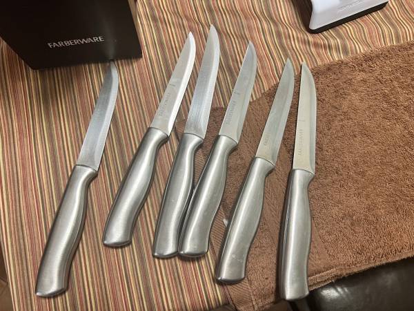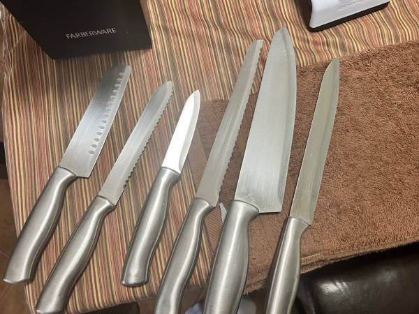 Farberware 15 piece stainless steel knife block set in good condition. Call Efrain for more info