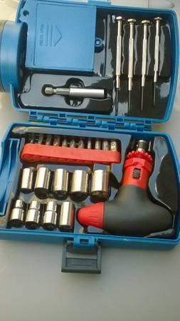 Portable Auto, Home, Boat, Camping and Emergency Tool Kit with Flashlight, Ratchet Screwdriver Compact Combo Kit