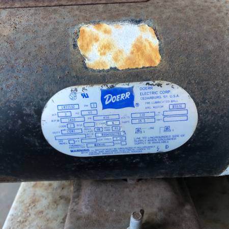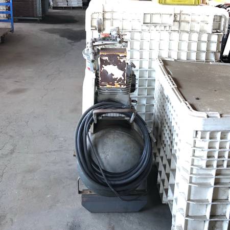 Air compressor with hose. Don’t know much about it. Looks like a Quincy. I was told, by an employee it ran but could not check it because of the plug configuration (20v) So it is being sold as not running. It will not sell for one dollar. When we listed it, the price box would not accept letters so to complete the listing we entered $1. But “Make Offer”. Check ID tag on motor for motor specs.