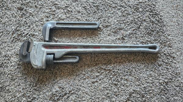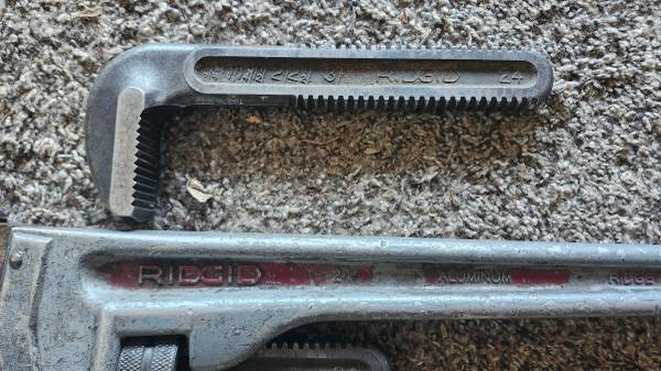RIDGID Pipe Wrench: Aluminum, 3 in Jaw Capacity, Serrated, 24 in Overall Lg, I-Beam with extra 3" jaw made in USA