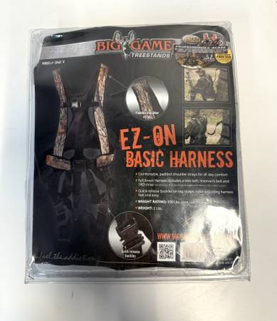 EZ-ON Basic Harness by Big Game Treestands – Brand New! Stay safe and secure with this never-used EZ-ON vest-style fall harness and backpacking system from Big Game Treestands. Brand new, never worn...