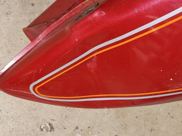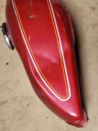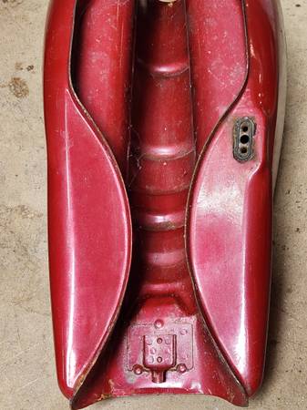 1976 KAWASAKI MOTORCYCLE GAS TANK. KZ400 . NO KEY, NEEDS RESTORATION. HAS DENTS. ------------------------------54624