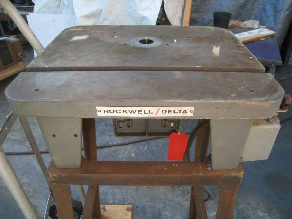 RUNNING DELTA 43-110 SHAPER WITH A STAND FOR SALE. no fence or knives. TOP HAS LOTS OF TAPED HOLES FOR JIGGING. $190 show contact info
