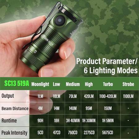 $17 sofirn SC13 HCRI (brand new) 18350 battery 1100 lumen pocket EDC 519A 90+ High CRI Mini Flash Light 5000K color temperature, 2.54 inch $20 Fenix 20 V2.0 (brand new) SST20 LED, 350 lumens 4...