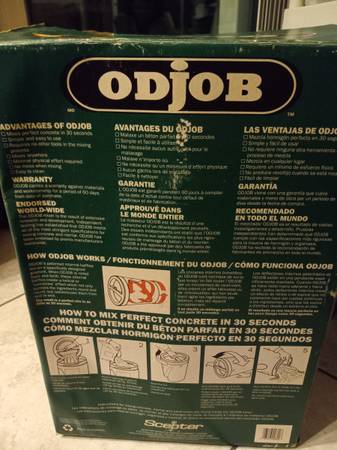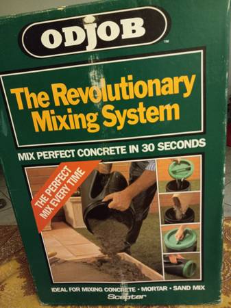 Odjob - The Revolutionary Mixing System - Ideal for mixing concrete, mortar, sand...Mix Perfect Concrete in 30 Seconds. See full description in pictures. Made in Canada. Perfect condition. Call if...
