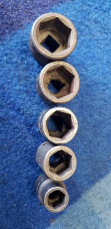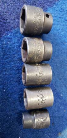 Comes with 3/8, 1/2, 9/16, 5/8, and 11/16" All are in great shape.