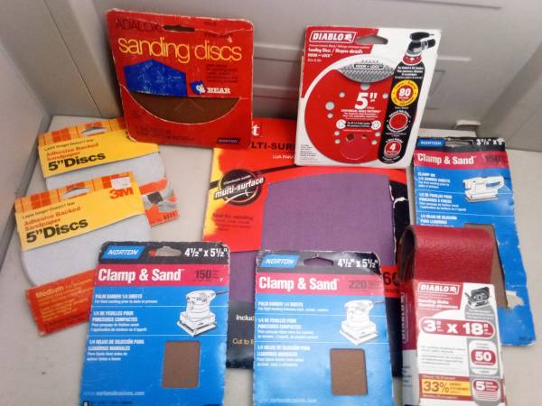Collection of Sand paper Sanding block Miter box Mallet Shims Scissors (8) Paint Rollers (3) X-Tend roller poles Philips screw driver🪛 Dust Broom 🧹 (10) New paint brushes (6) Good used paint brushes...