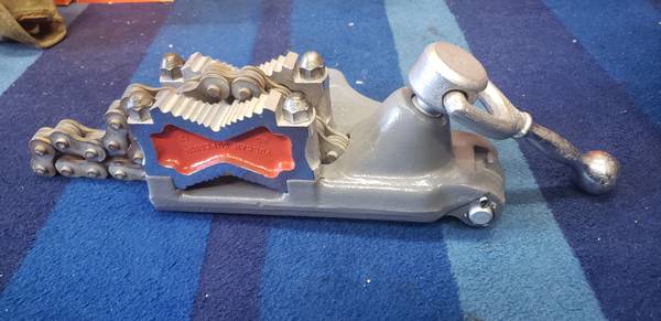Restored and in very nice condition. Bench mount chain type pipe vise with 1/4" to 4 1/2" capacity.