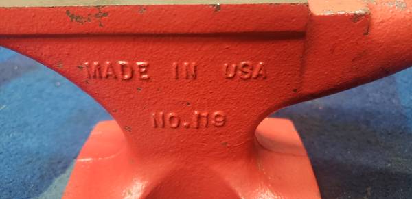 In real nice shape and weighs 8 1/2 pounds. Surface measures about 5" x 2" (and it's about 8 1/2" long over all) and it's 4" tall.
