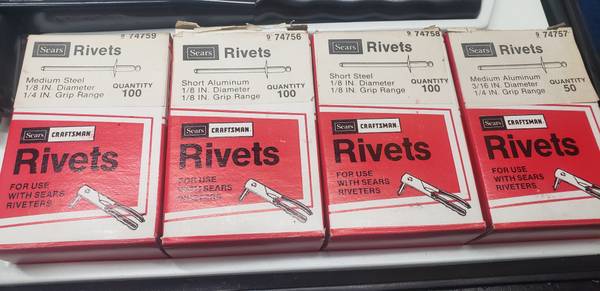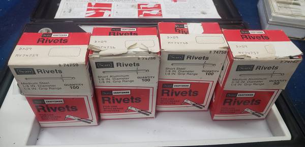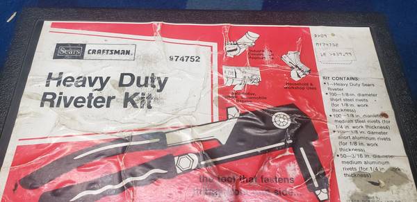 From 1978 and in great condition, in the original case. 1 of the boxes of rivets has never been opened, another has a few out of it and the other 2 are still mostly full as well.