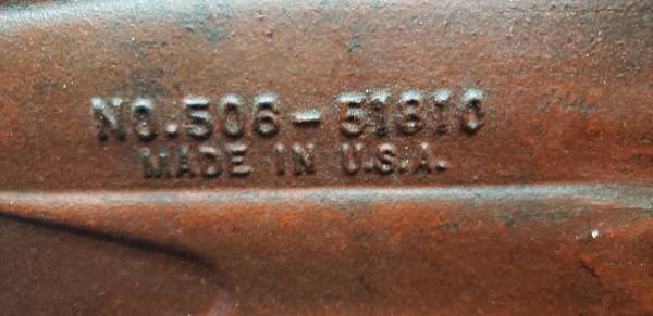 In nice original condition, model 506-51810. Works well and has built in pipe jaws as well. 5" wide jaws and about 8 1/4" tall and about 14 3/4" in over all length.