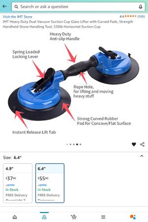 Text John NEW IMT Heavy Duty Dual Vacuum Suction Cup Glass Lifter with Curved Pads 330lb Horizontal Suction. Bought New on Amazon Never Used