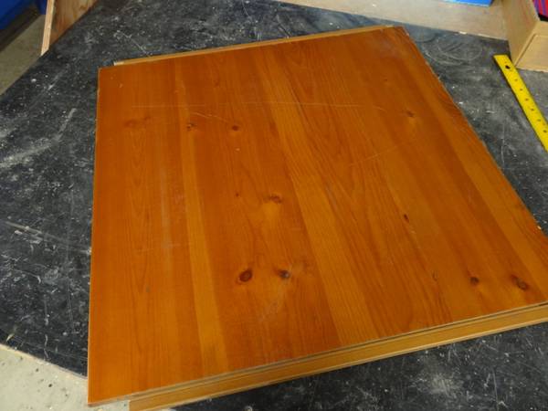 Offered for sale, Solid Wood Boards, roughly 22.4" x 22.3" ~ 3/4" thick. These appear to have been some sort of shelving from perhaps a retail store?... the edges are metal (easily removable) that could have gone into some sort of adjustable brackets for display of merchandise. Whatever they were... they are now surplus and were donated to our Huntington Landmark Toymakers Club. There are over 50 pieces in the stack, priced at only $3.00 each or 10 pieces for $25.00. Proceeds from the sale will go towards purchase of materials used to make handmade wooden toys that are given out to Orange County children each year. The total for 2024 was over 2,000! Call over to Richard at show contact info