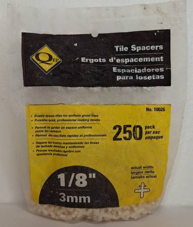 These QEP 1/8 inch tile spacers offer a traditional vertical tombstone style installation method. Constructed of plastic so they will not compress when used with marble, stone and large format tile. These hard tile spacers can also be easily removed and reused.