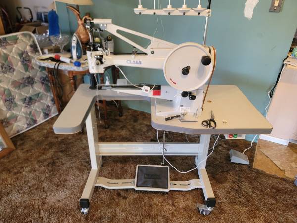Sewing machine Claes Leather Patcher with mobile table and servo motor. Best leather patcher made. This thing is like brand new. Hand crank it or use the adjustable speed servo motor. Extra bobbin...