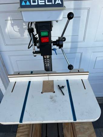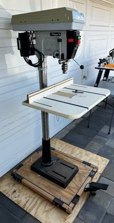 16.5” floor model drill press (17-965) with rockler table and fence. * mobile base and link belts not included