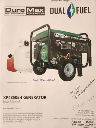 DUROMAX DUAL FUEL GENERATOR, GAS OR PROPANE, NEVER USED $400 ALSO AVAILABLE SEVERAL FILLED " FLAME KING" PROPANE TANKS WITH GUAGES $70