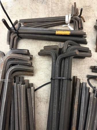 ALLEN WRENCHES OVER DOZEN EACH 1/4, 7/32, 3/16, 5/32, 1/8 AND 2.5 mm. FEW OF EACH 3/8, 1/2 OTHERS 200 IN LOT MOSTLY ALLEN MADE IN USA ALL FOR $10 NEW, UNUSED AND USABLE