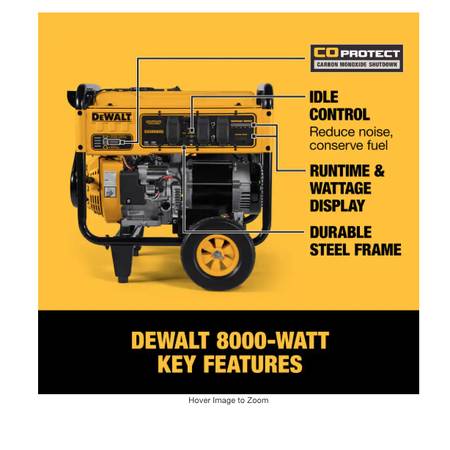 We will NOT respond to emails stating "text/call this phone number." DEWALT 10000 / 8000-Watt Electric Start Gas Powered Portable Generator with Idle Control, GFCI Outlets and CO Protect-DXGNR8000...