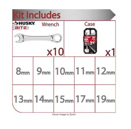 Husky BITE Metric Combination Wrench Set (10-Piece) Brand new. 3 sets available. Model # HBCW10XLM Delivery available. Message for further details.