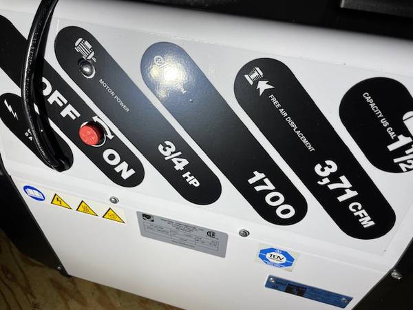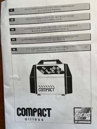 Werther Compact 106 Oil less air compressor. 3/4 hp. 3.7 cfm. 1 1/2 gallon tank.. Super quiet for indoor use 59 dB. Never used. Sells new for up to $4500 (Cole Palmer rip off price) Includes manual and castors. Made in Italy.