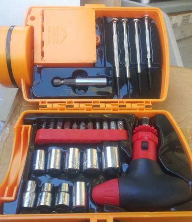 Portable Auto, Home, Boat, Camping and Emergency Tool Kit with Flashlight, Ratchet Screwdriver Compact Combo Kit