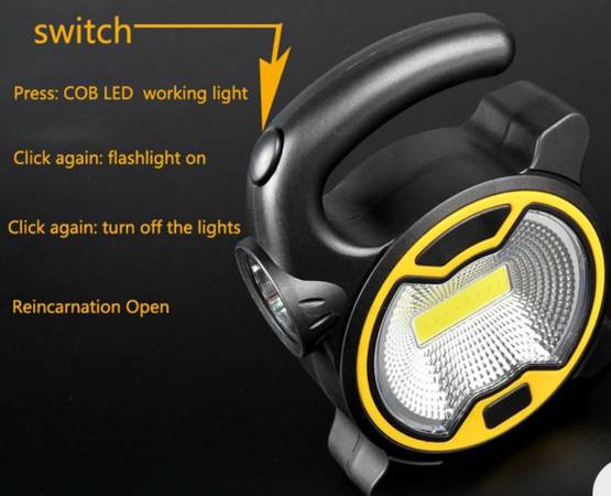 Yellow COB 2-in-1 LED Work Light/Camping Lamp/Flashlight/Cordless Torch