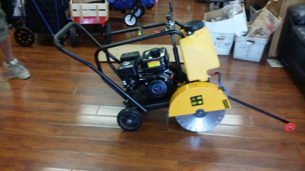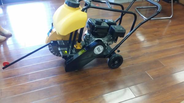 14" walk-behind saw 6.5hp Briggs&Stratton 14inch blade included 1" arbor ,water tank ,high speed leveling ,poly guide wheel ,regular gas ,recoil start ,controls on handle call Dan its new we...