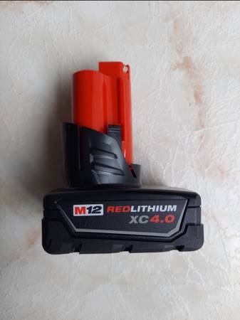 New Milwaukee 4.0Ah Battery M12 Amazing power, performance and quality. Come see it anytime. Price firm. Check out my other postings! No junk from pallets or crap that's been sitting in some...