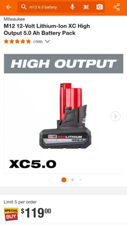 New Milwaukee High Output 5.0Ah Battery M12