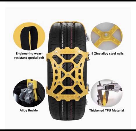 Anti-Skid Emergency Snow Tire Chains with Special Design can be applied to all the models of the tire width which between 6.5”-10.8”(165mm-275mm) for Car, SUV, and Truck. Best for ice road, snow road and mud road in all season.
