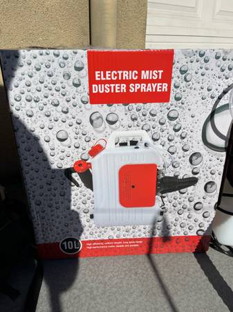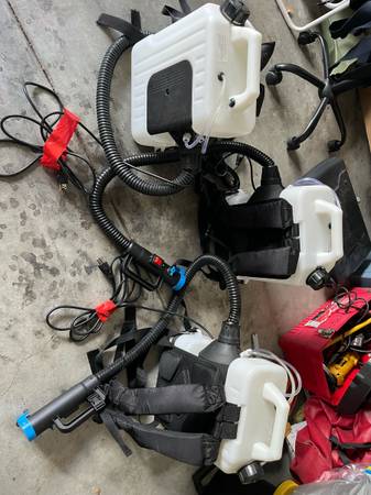 Selling three brand-new 10-liter electric ULV mist duster sprayers. Never used — tanks, hoses, cords, and wands are all clean and untouched.