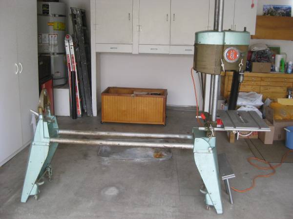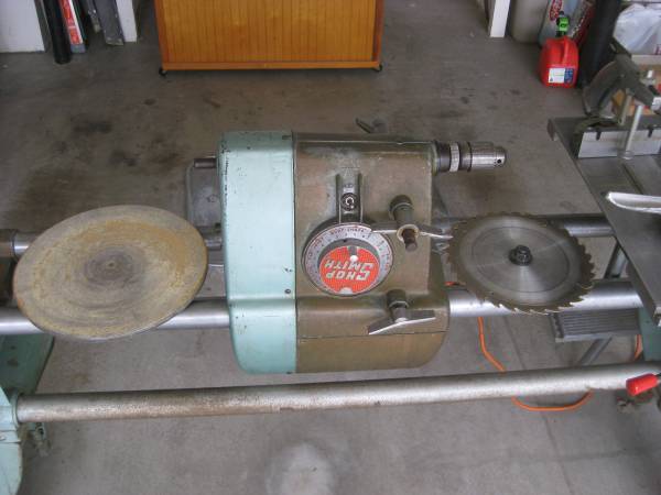 For sale is a complete ShopSmith Mark V woodworking system with table saw, belt sander, disk sander, drill press and lathe attachments. Included are numerous parts and accessories, including belts, and blades. A bonus is a large storage crate on wheels for storing various attachments and fits under Shopsmith. The motor and speed adjustment work very well, and the wheels roll and retract to secure it. Turn your garage into a complete woodworking shop with one very unique tool. Local pickup only, in San Clemente. Now priced at $600