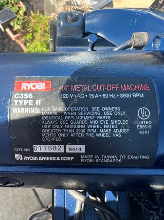 I am selling my 14 inch Ryobi metal cut off saw, it has a good blade, works like a champ has the clamping mechanism to hold the work while being cut, sold new for $300, no longer using it works perfectly will sell for $75 or best offer
