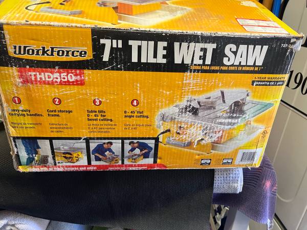 7” TILE WET SAW WORKFORCE THD550 Used only once In the box. Instructions Manual. CASH ONLY MUST PICK UP