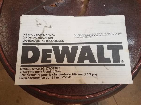 Dewalt Magnesium 7-1/4" worm drive. Framing hook. Works great. $90