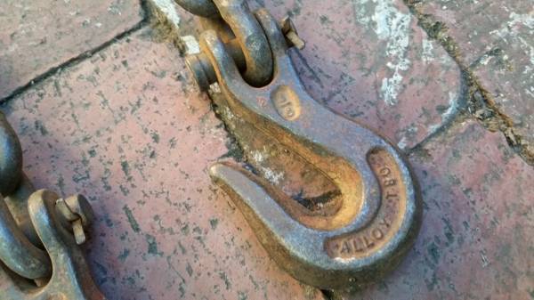 3/8" x 9 ft. Chain w/Hooks SOLD 5/16" x 10' Chain w/Hooks $20 USA forged hooks.
