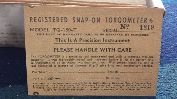 1/2" drive and reads from zero to 150 foot pounds. Comes in original box, with original instructions and warranty card even. 1960s era and in excellent condition Used with a breaker bar or ratchet,...